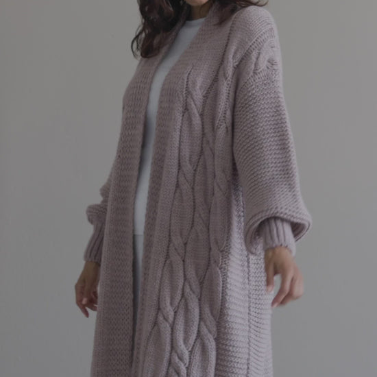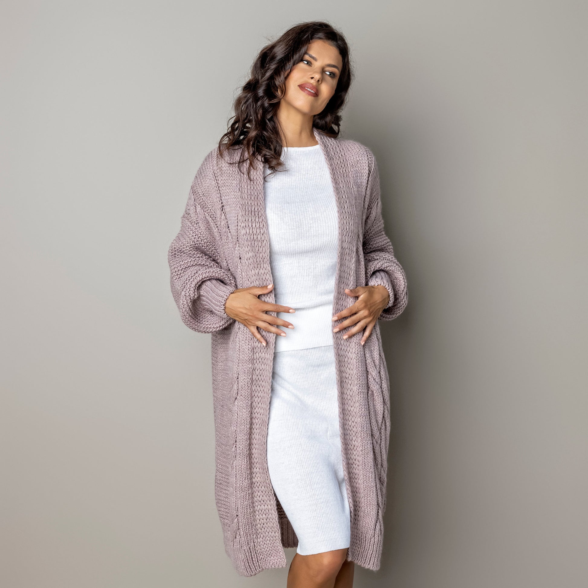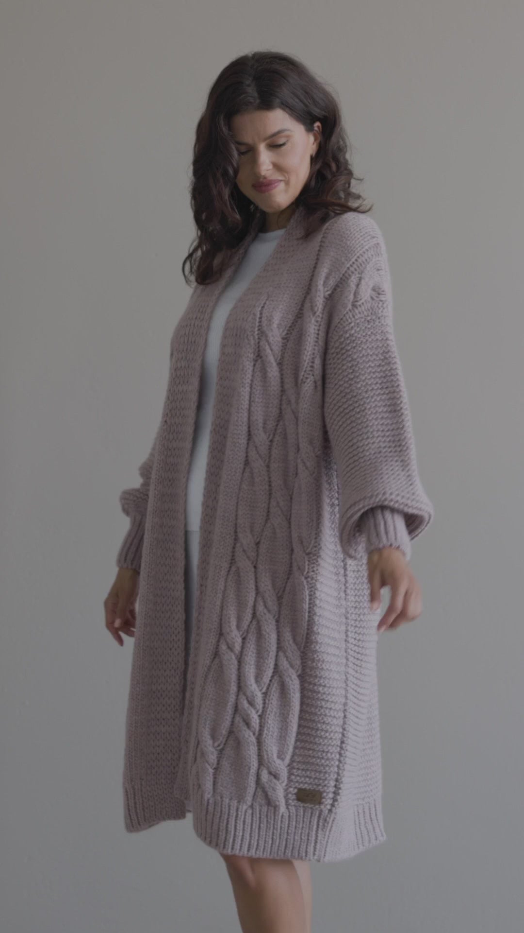 Chunky knit alpaca wool cardigan CATHERINE - dusty rose