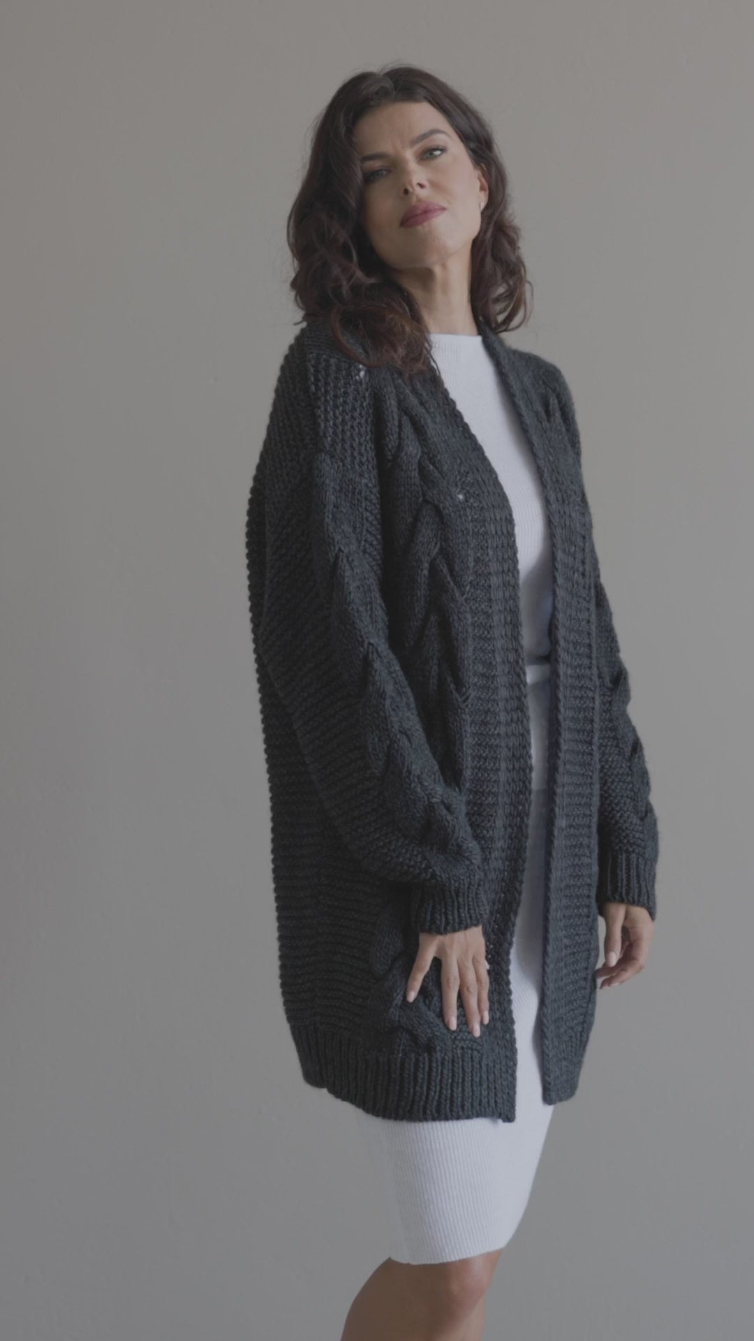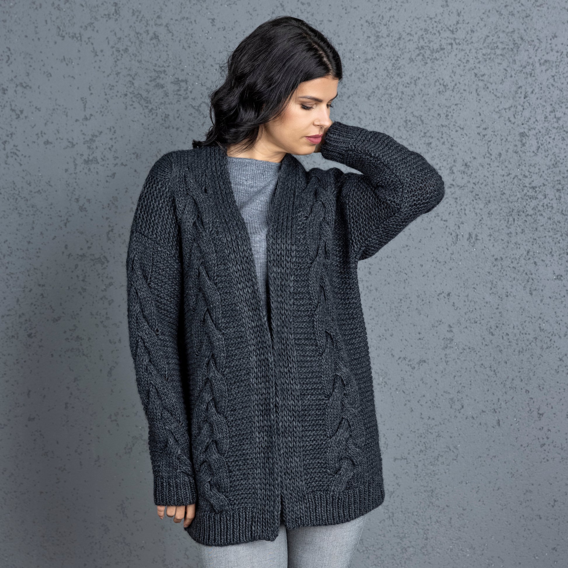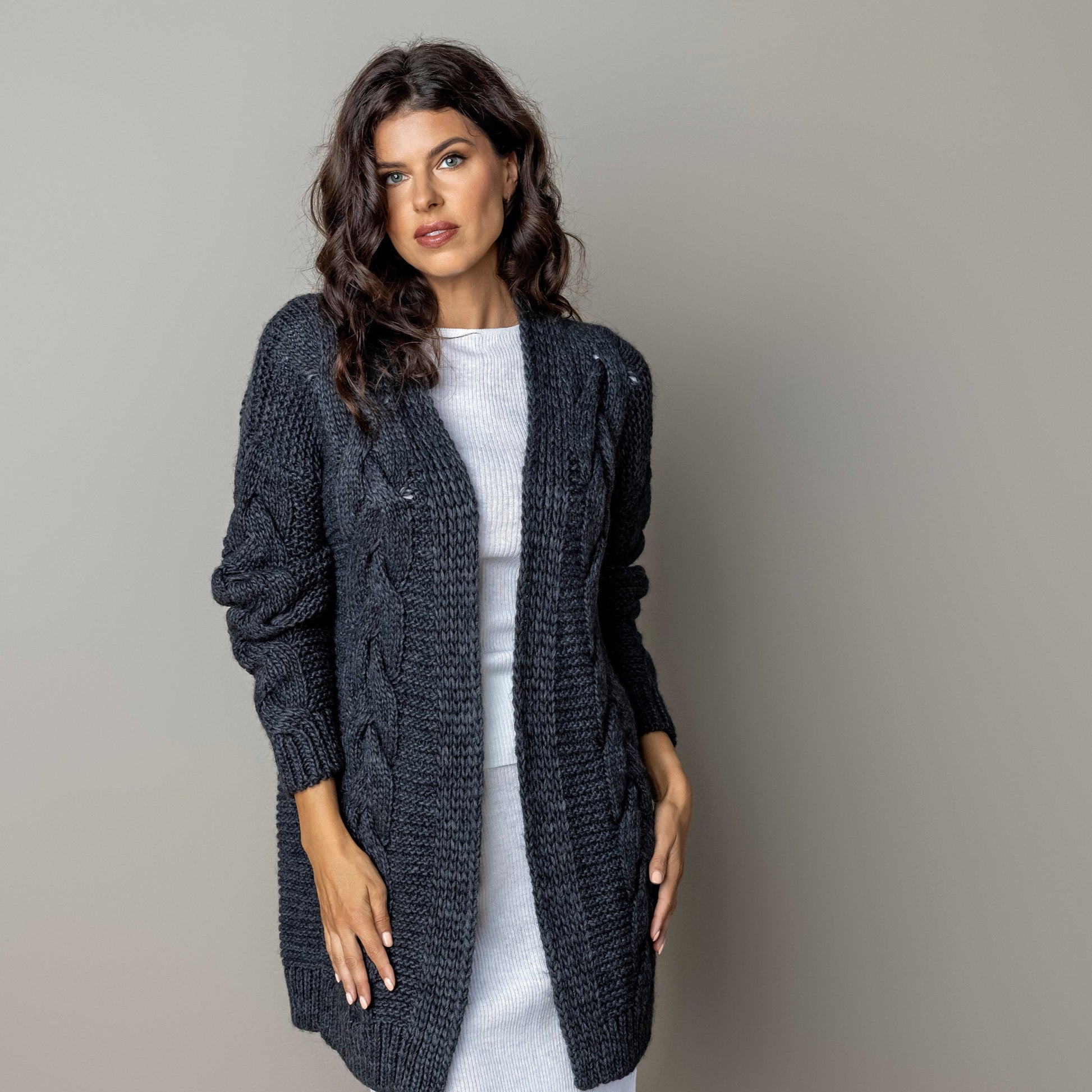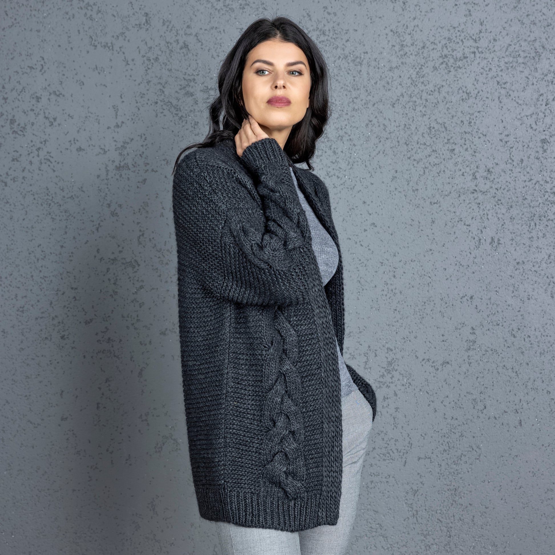 Chunky knit alpaca wool cardigan NORA - dark gray