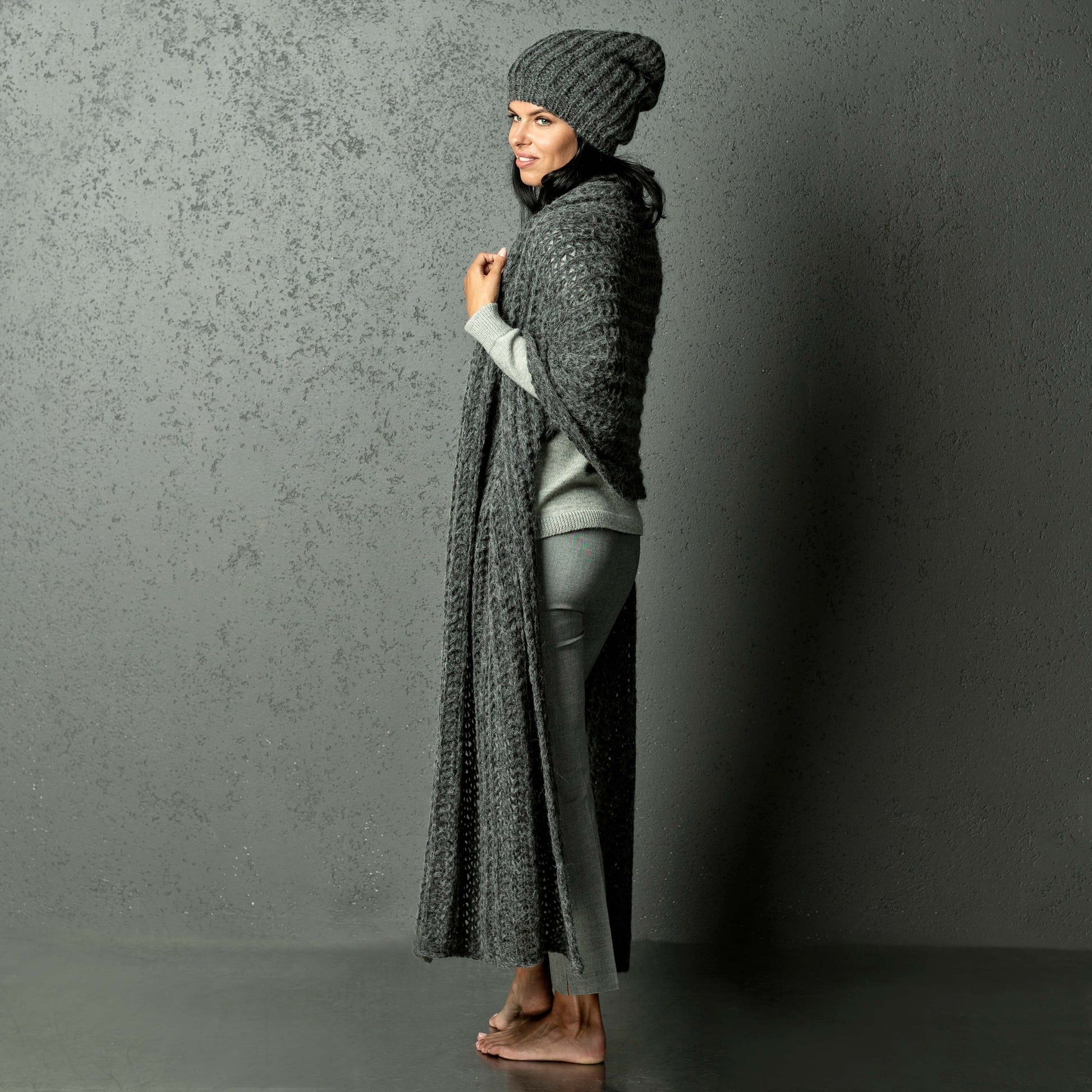 Chunky Knit massive alpaca wool Scarf and hat - gray