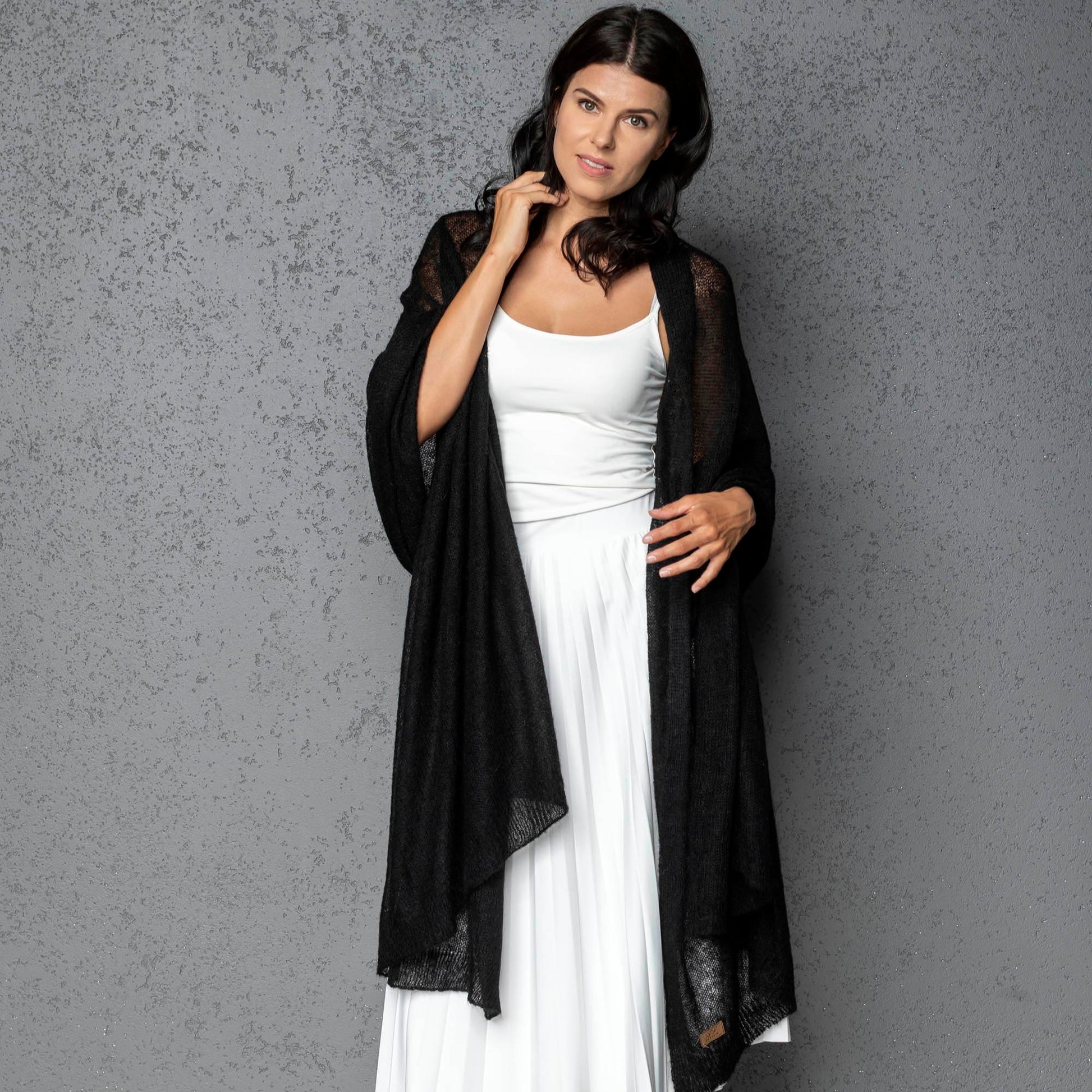 Luxurious, light like a wind Wrap - scarf black – very wide and very  long kid mohair wool garment suitable for all year seasons.