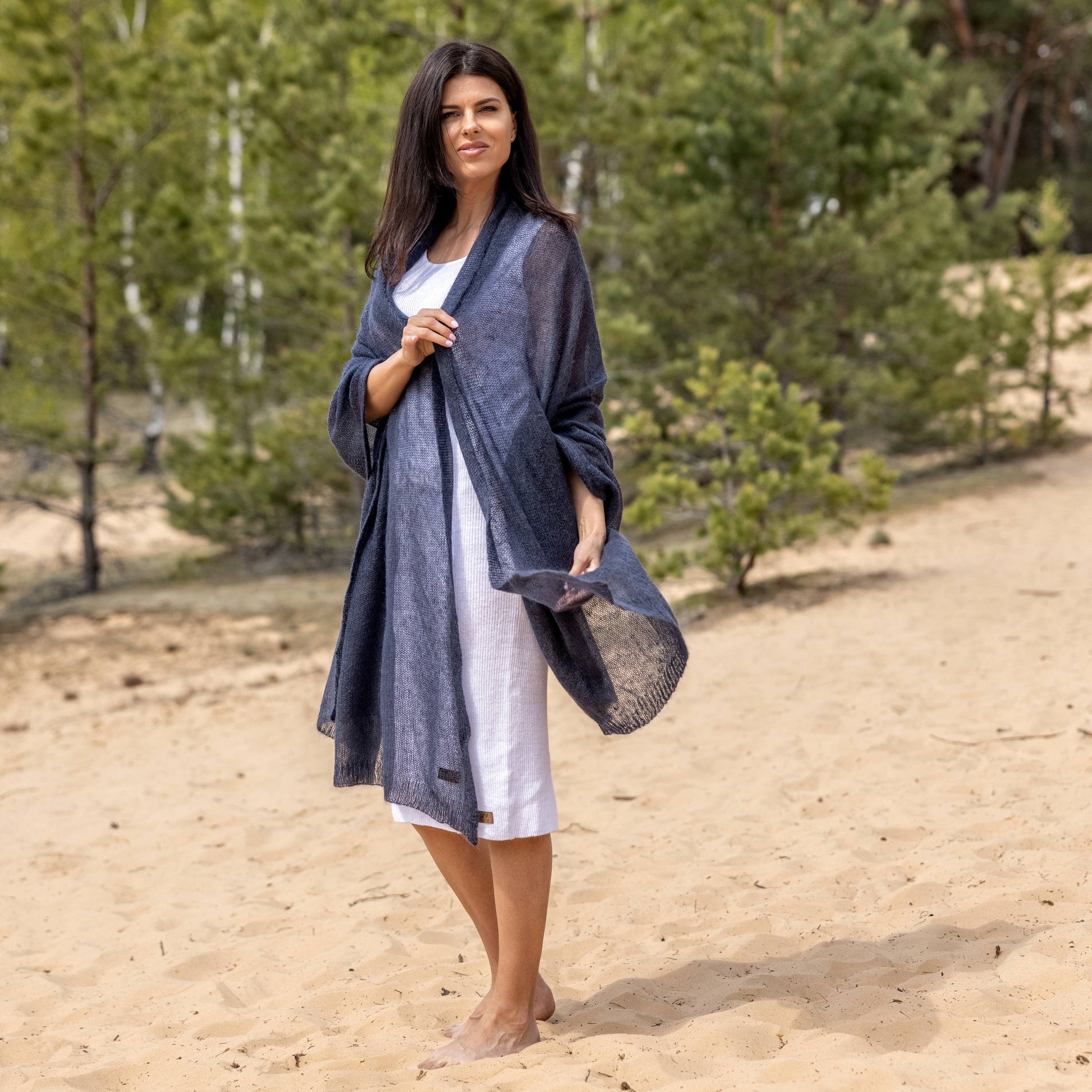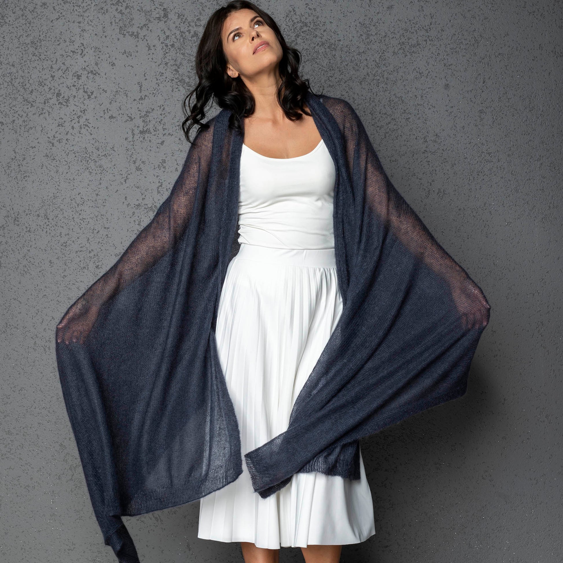 Luxurious, light like a wind Wrap - scarf blue with gray shade – very wide and very  long kid mohair wool garment suitable for all year seasons.