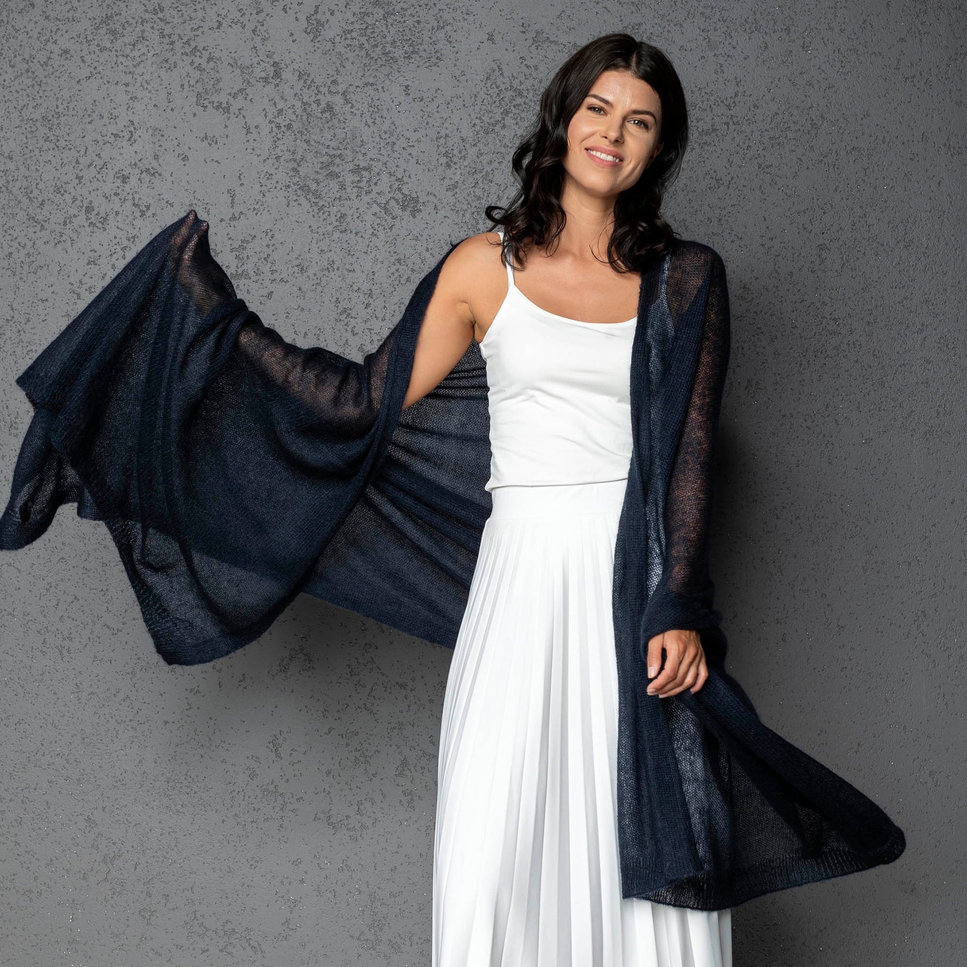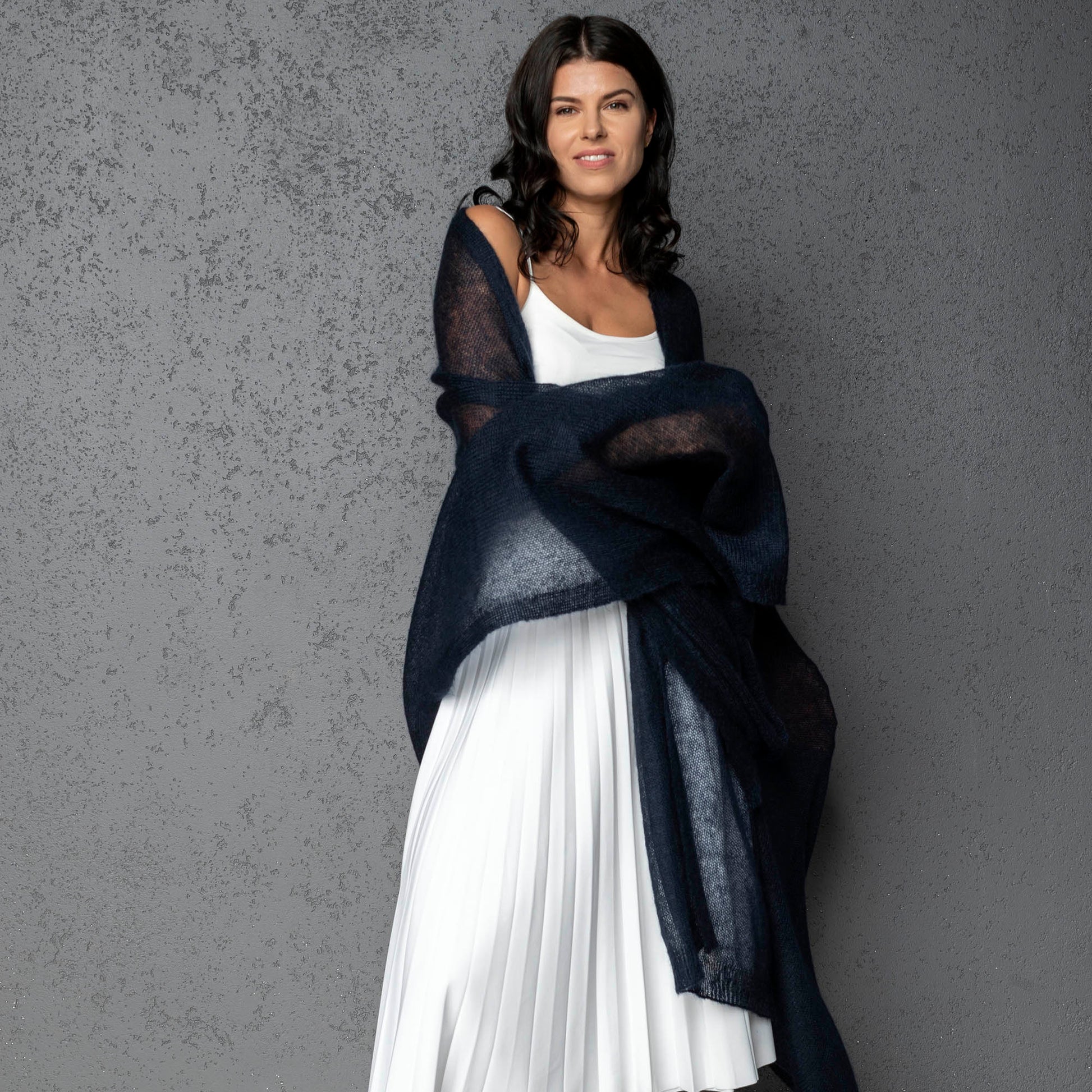 Feast Gala Wedding cape wrap shrug shawl knit from kid mohair - dark blue