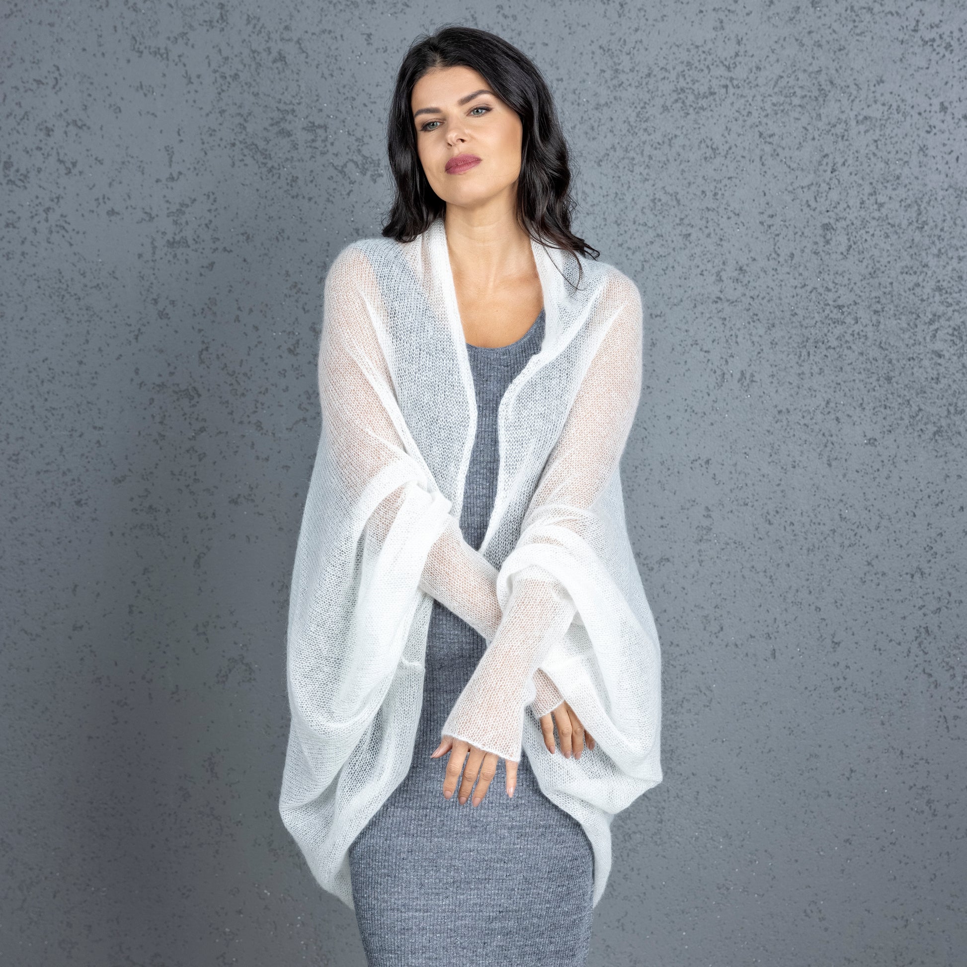 Knit lightweight mohair long cardigan wrap WRAPER - white