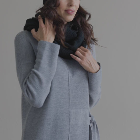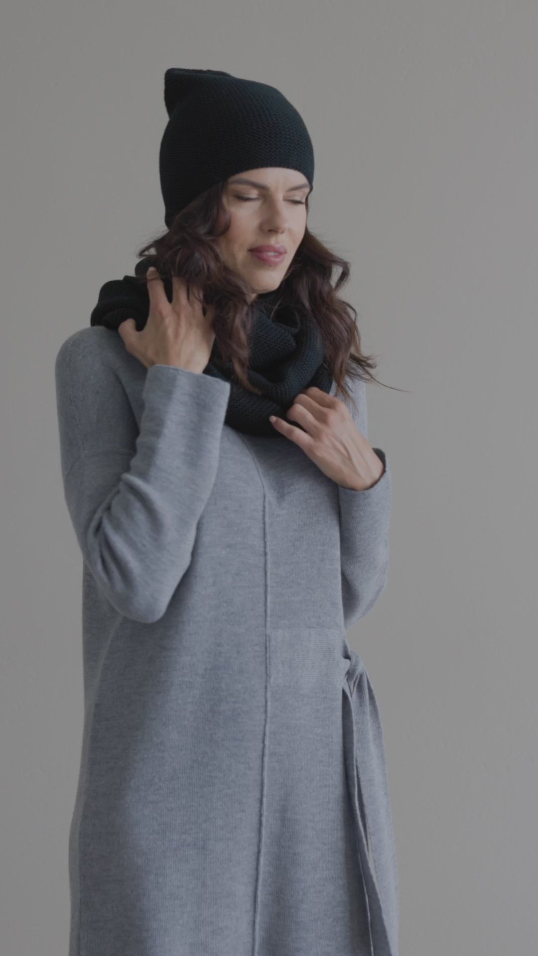 Knit minimalist soft 100% merino wool infinity Scarf and hat - black
