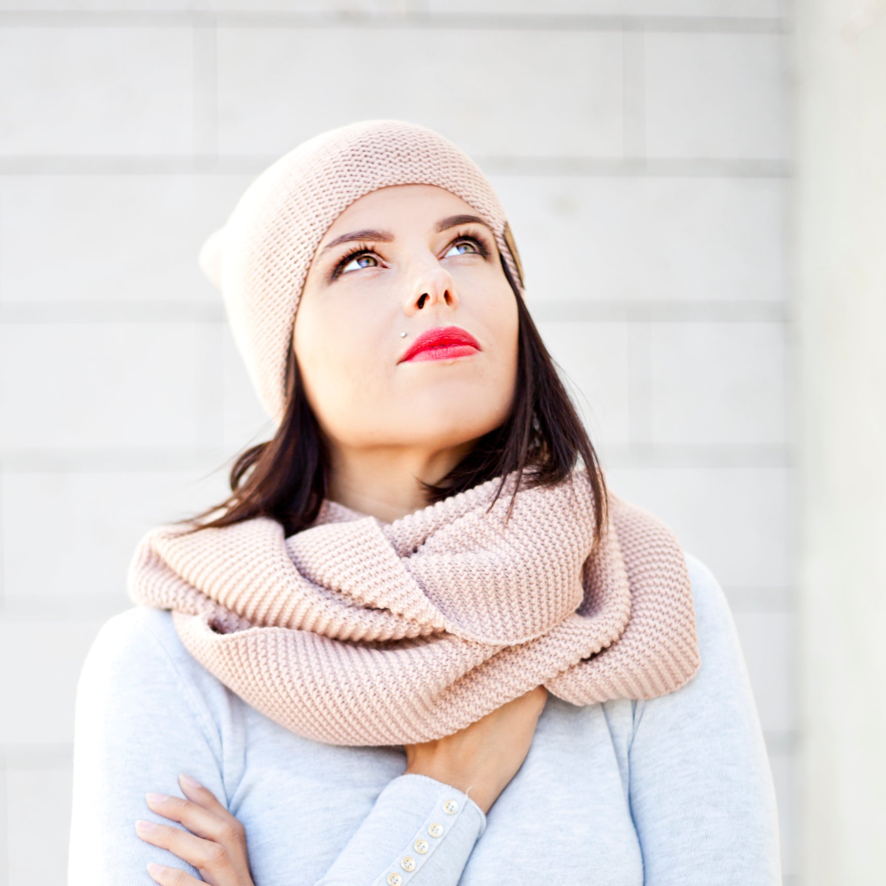 Knit minimalist soft 100% merino wool infinity Scarf - powder