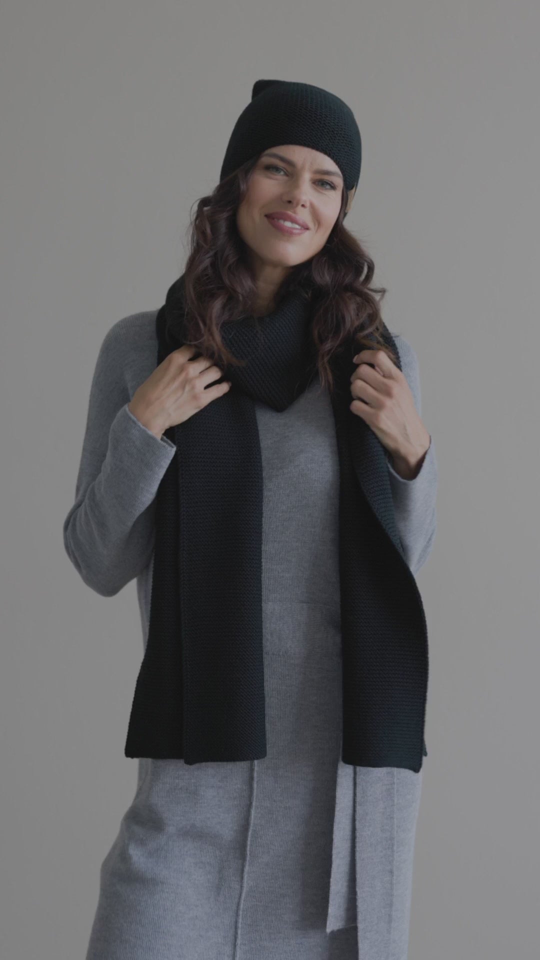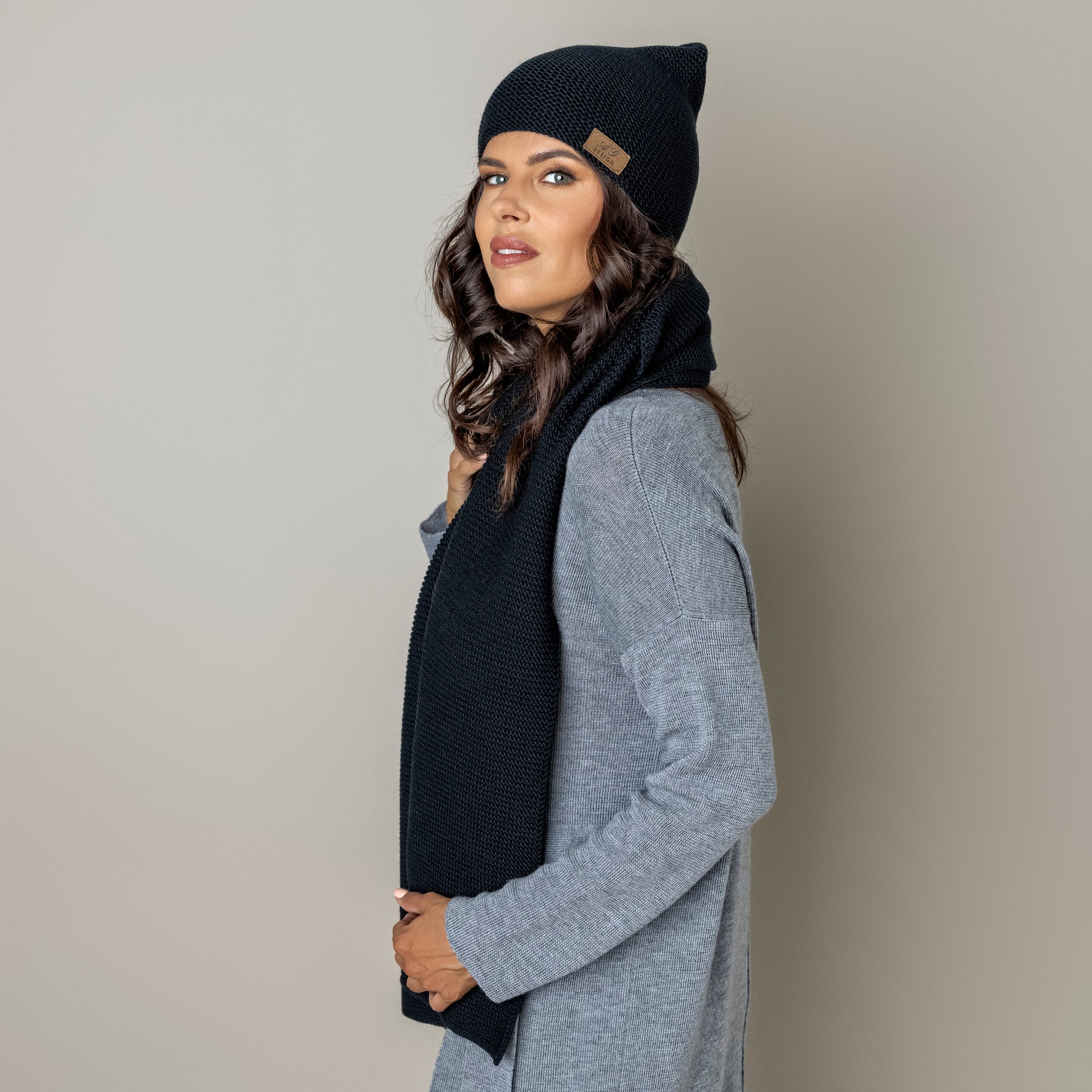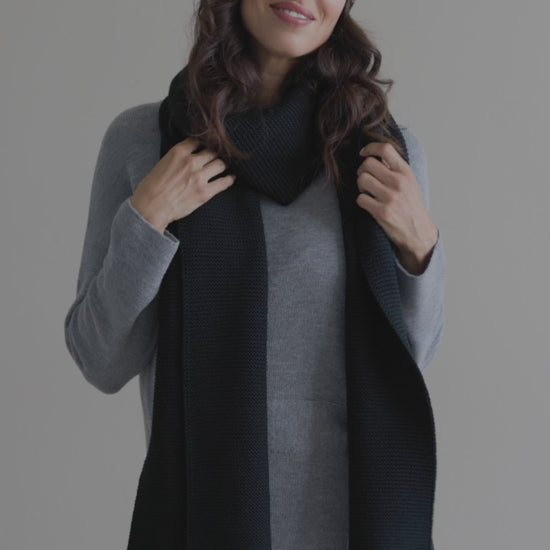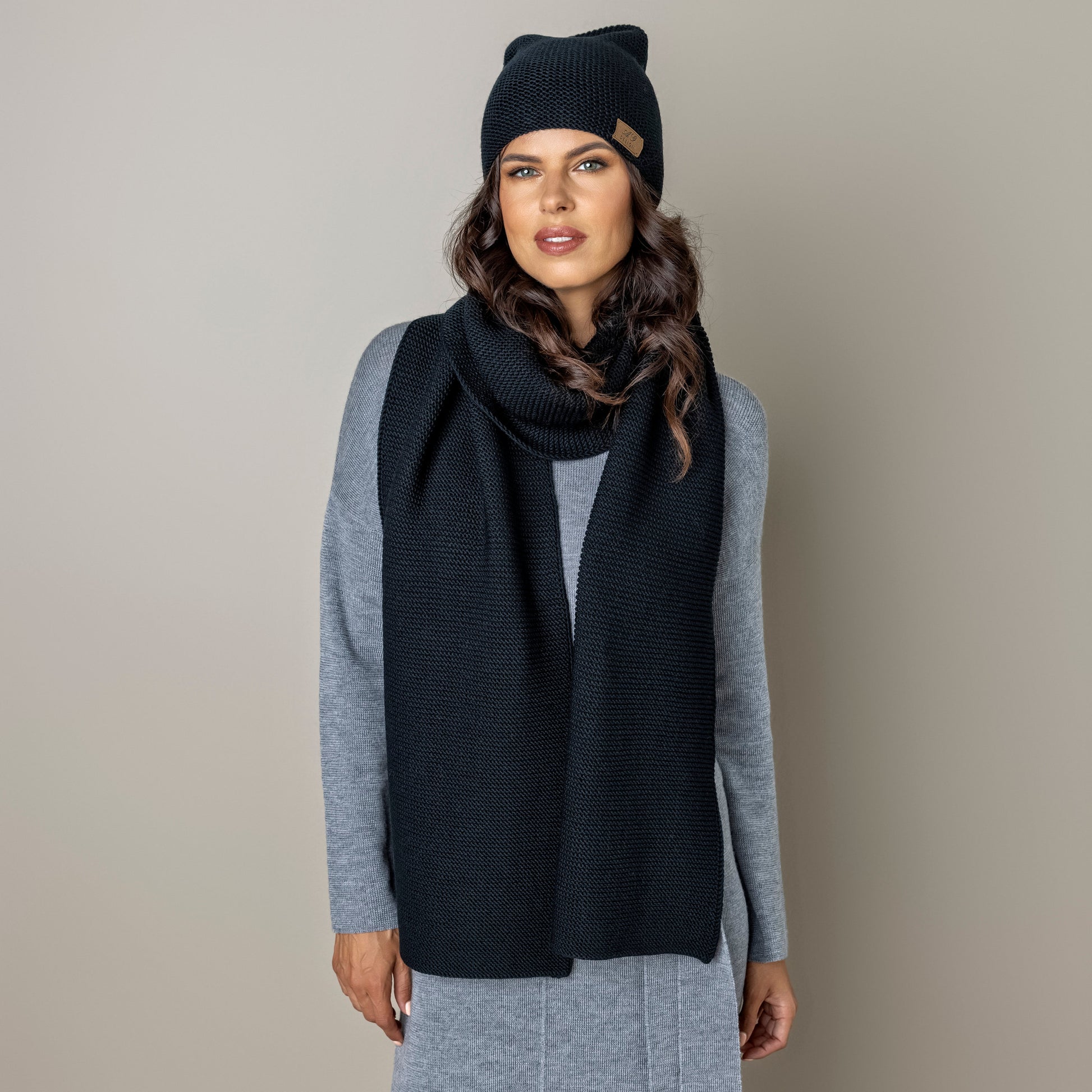 Knit minimalist soft 100% merino wool Scarf and hat - black