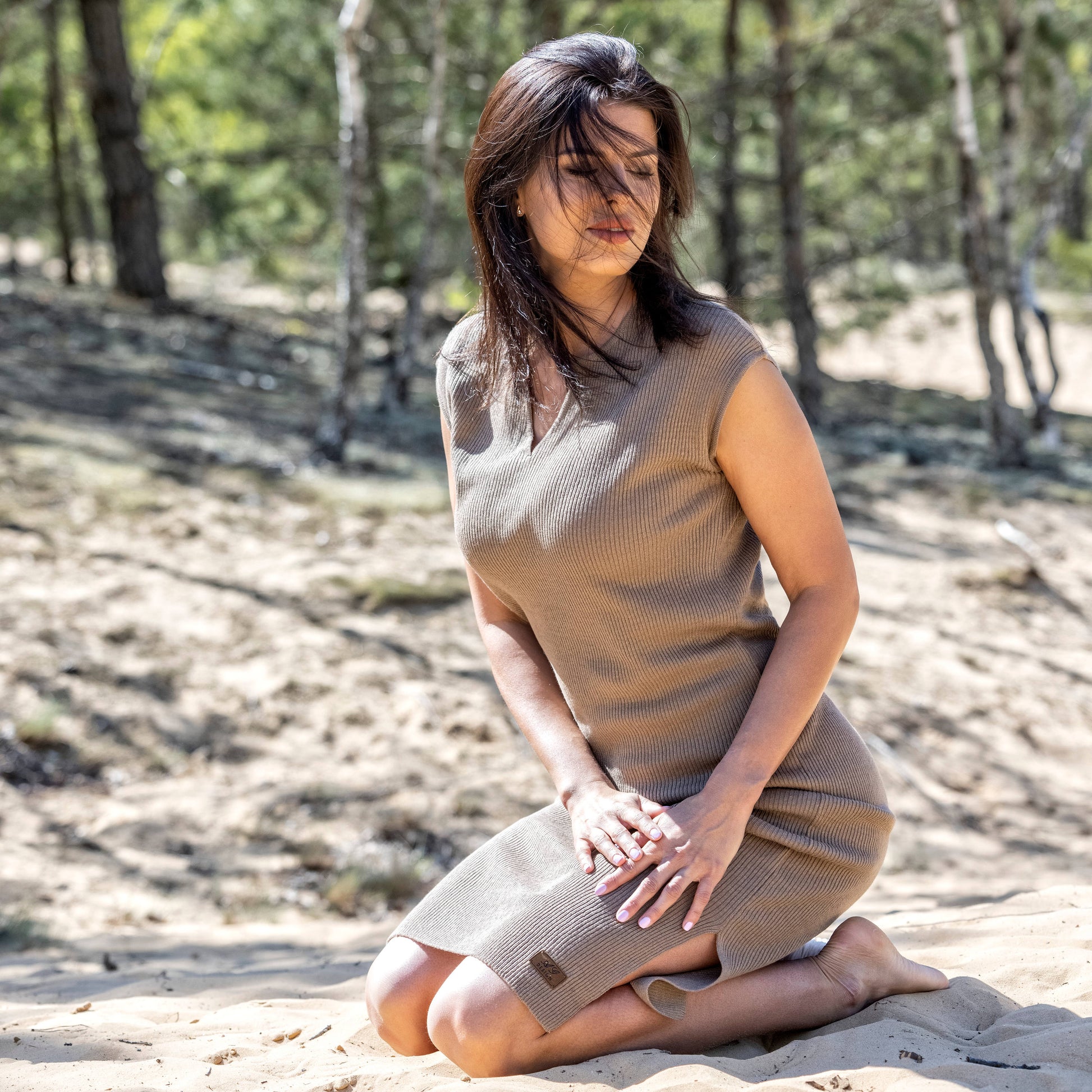 Linen dress, Linen knitted dress, Slim dress, Tight dress, Eco linen dress, brown knitted dress, Linen summer dress, Light dress, Midi dress