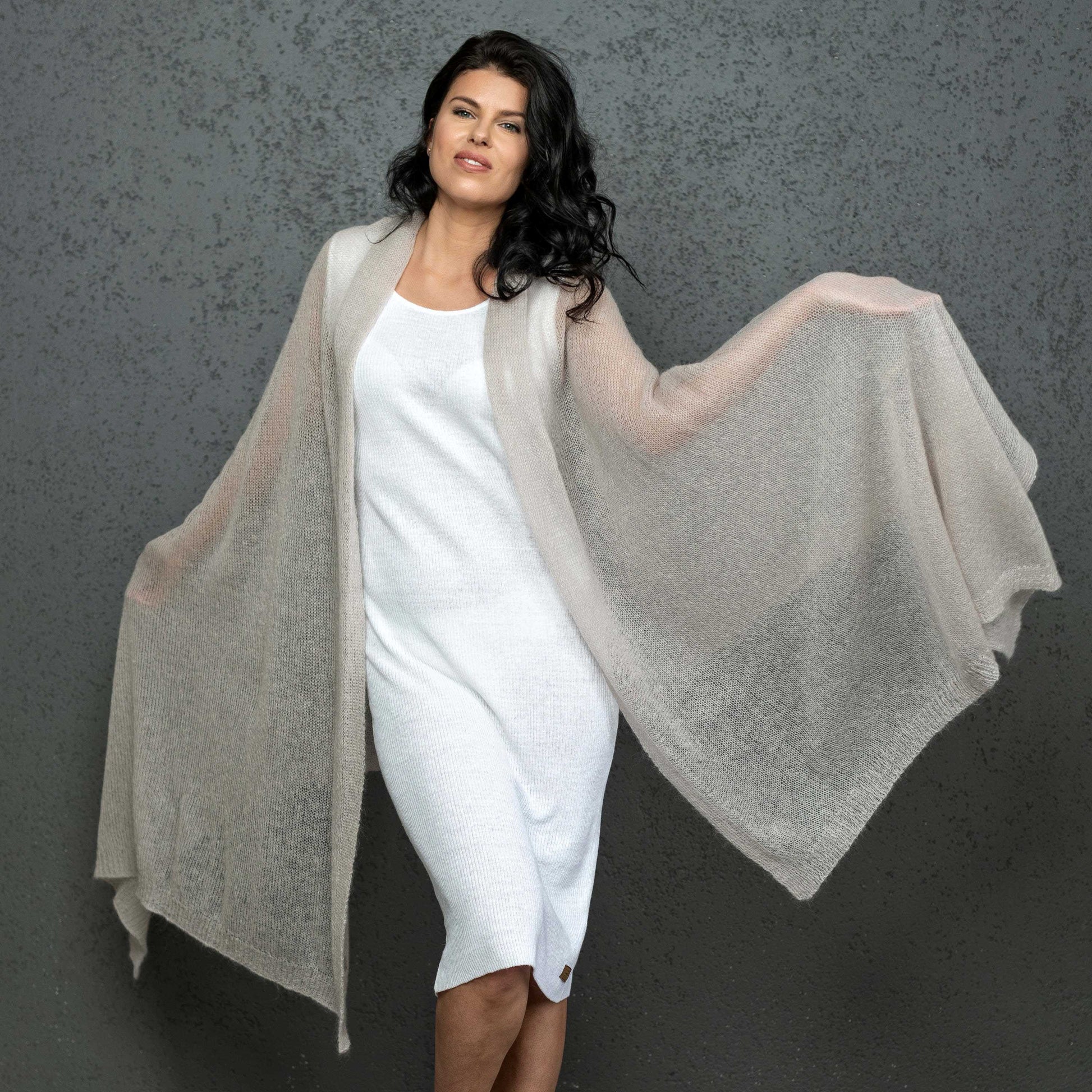 Luxurious, light like a wind Wrap - scarf ASHROSE WITH GRAY SHADE– very wide and very long kidmohair wool garment suitable for all year seasons.
