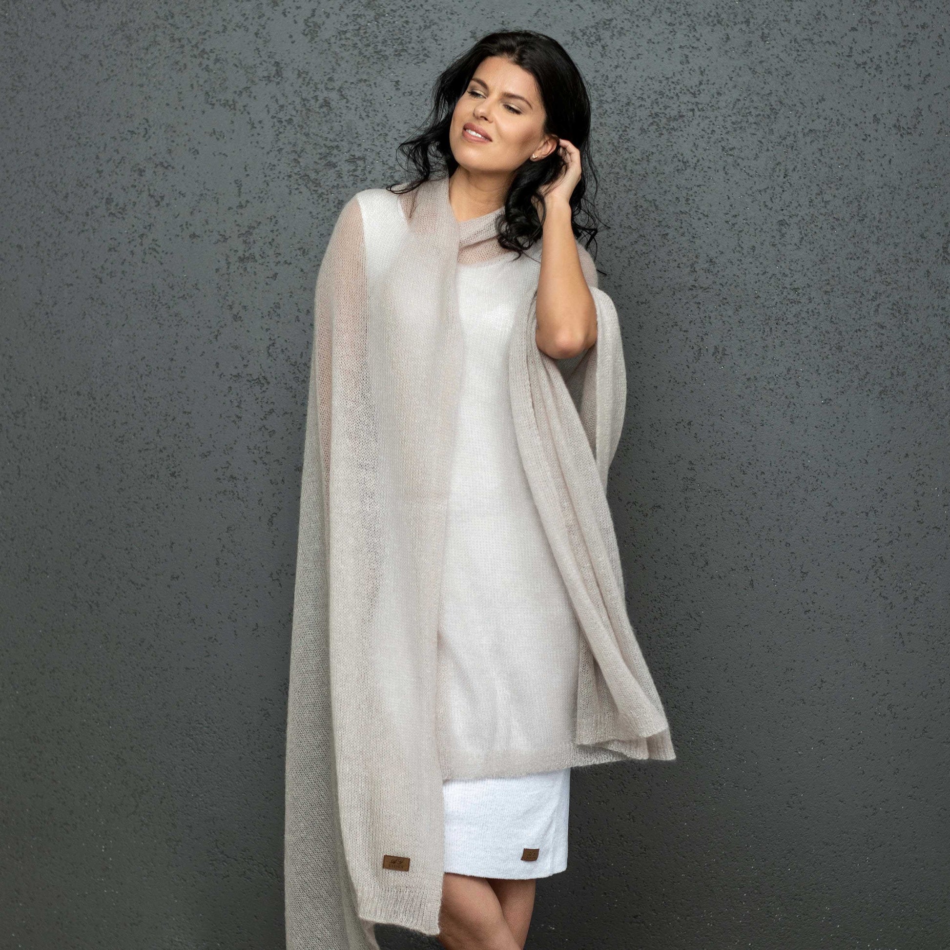 Wrap - scarf is made of very luxury, thin kidmohair wool yarn, that's why it's very soft and light.