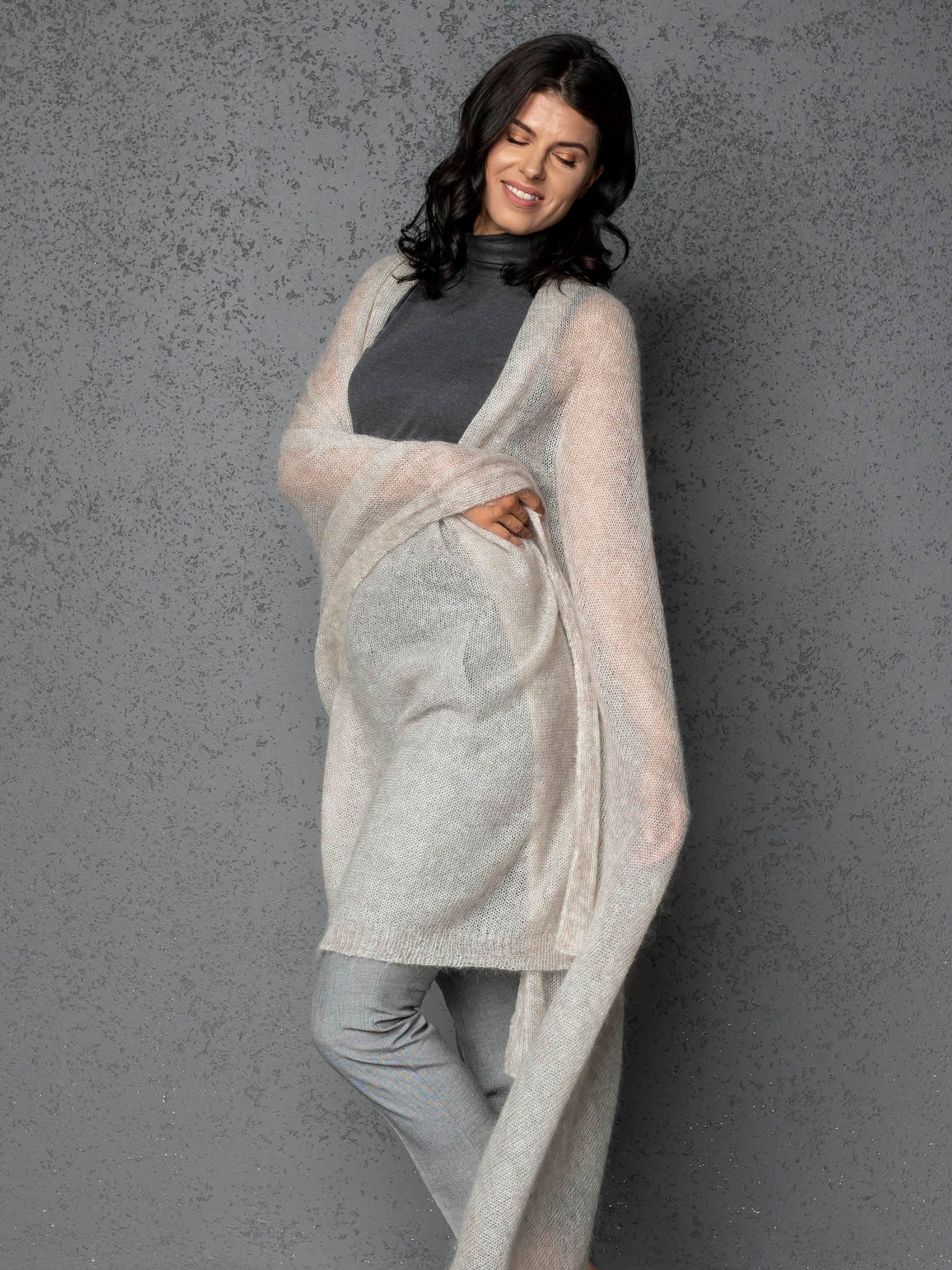 Wrap - scarf is made of very luxury, thin kidmohair wool yarn, that's why it's very soft and light.