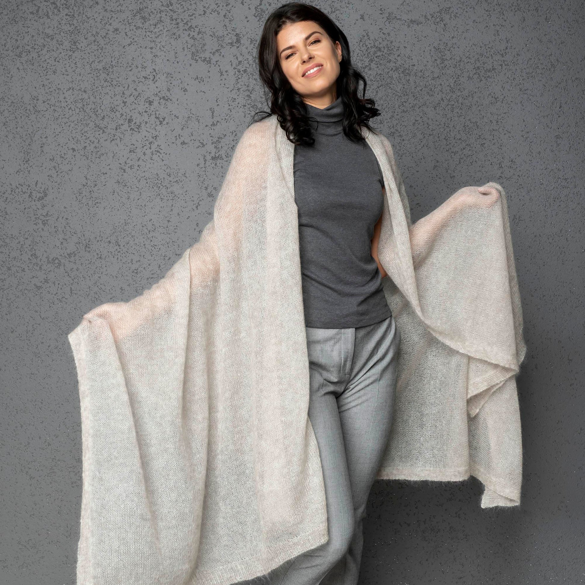 Luxurious, light like a wind Wrap - scarf CREAMY – very wide and very long kidmohair wool garment suitable for all year seasons.