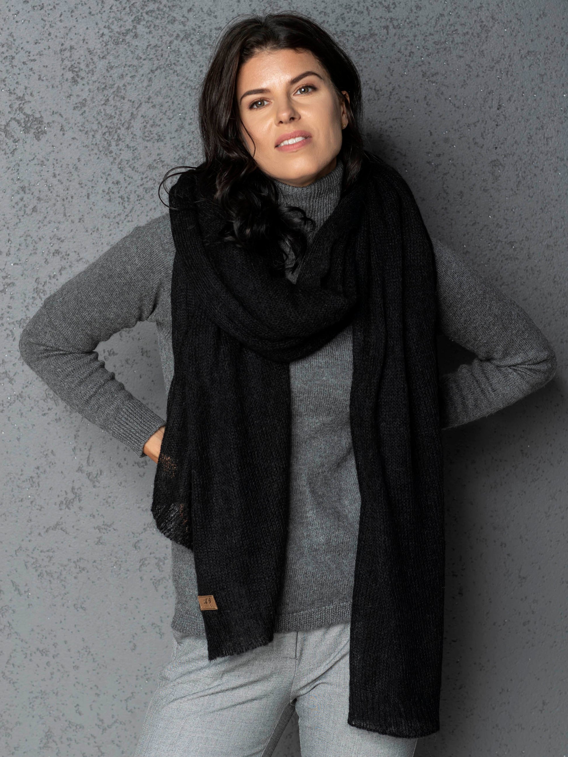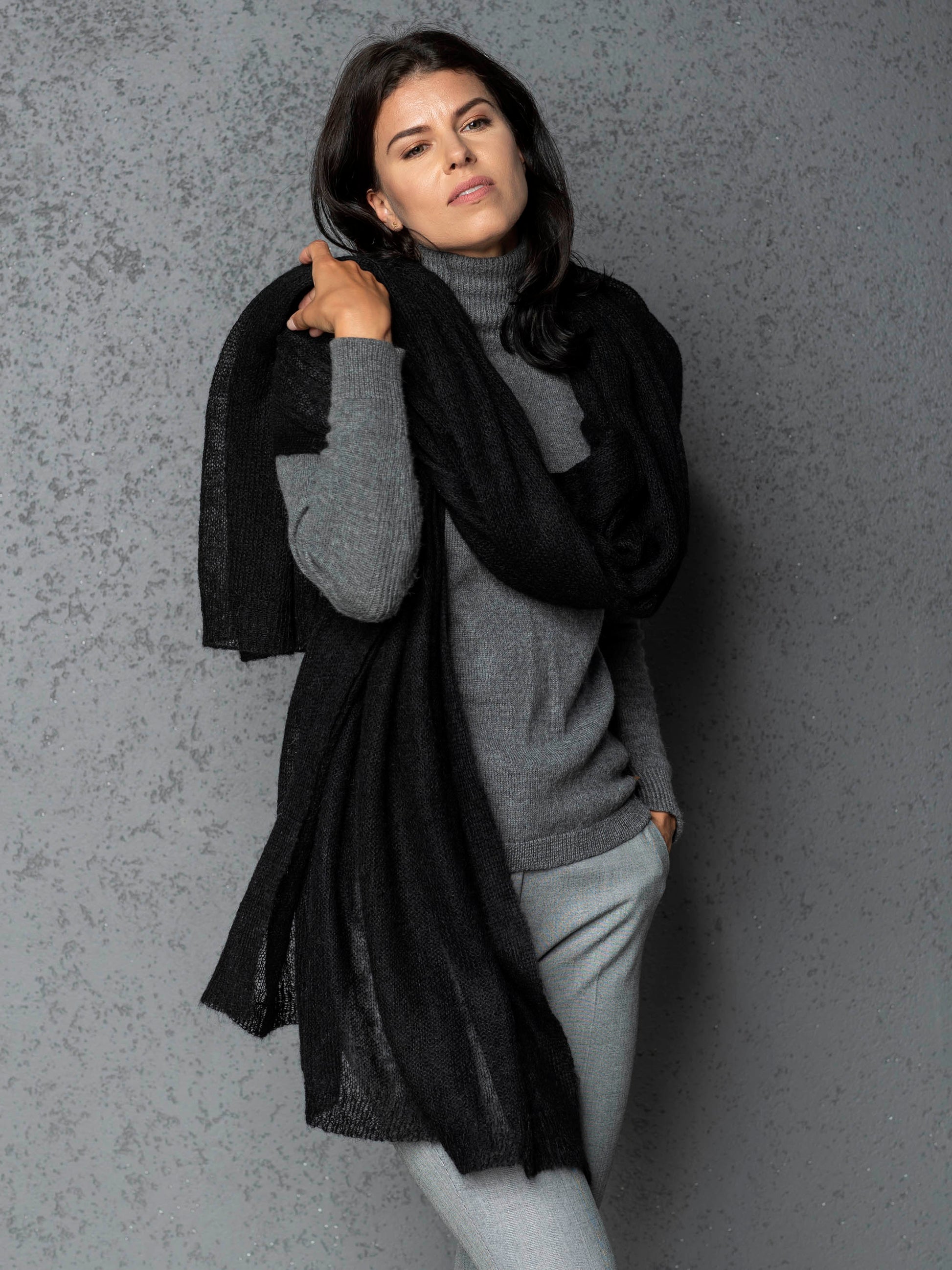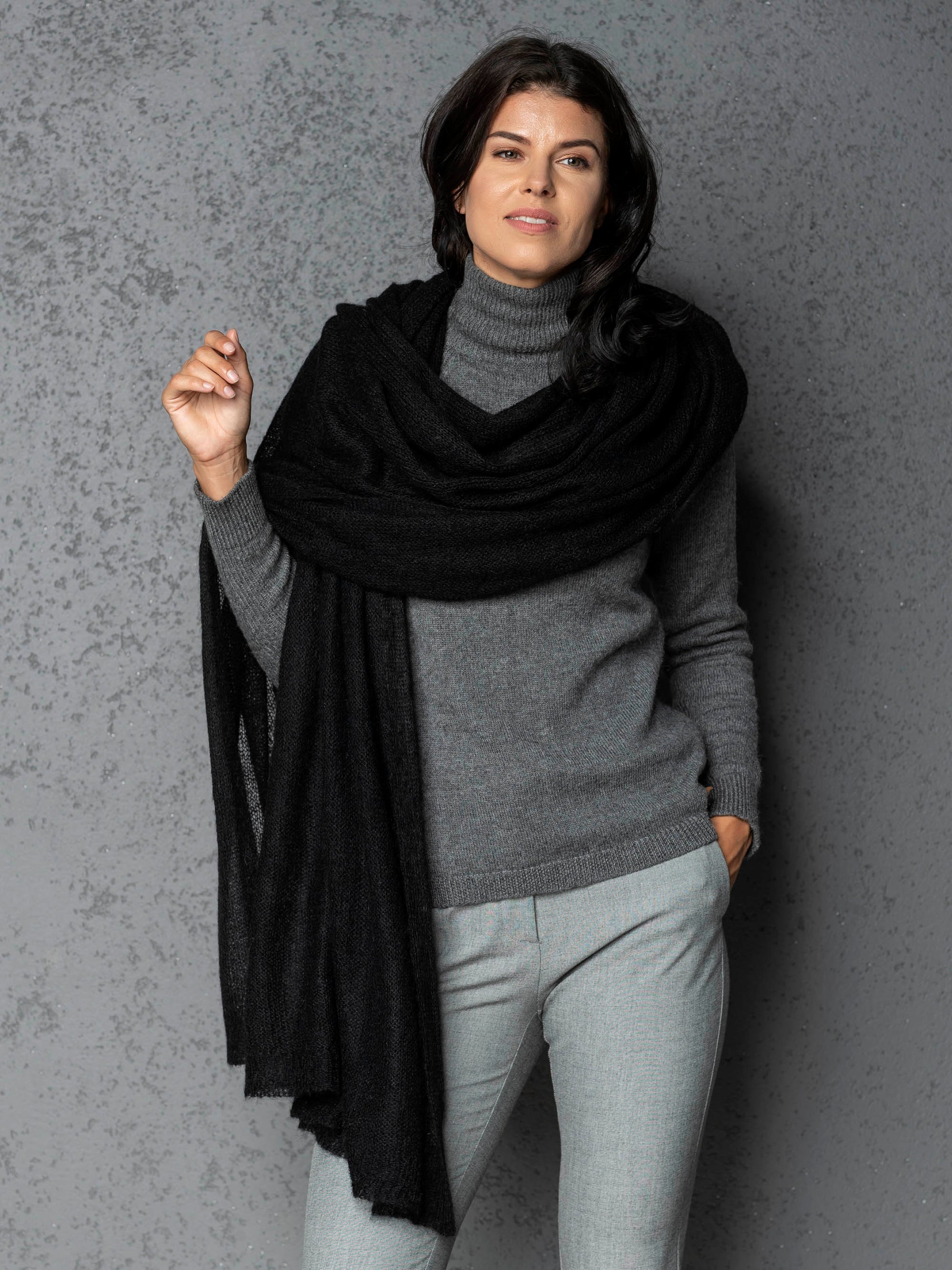 Luxurious, light like a wind Wrap - scarf BLACK – very wide and very long kidmohair wool garment suitable for all year seasons.