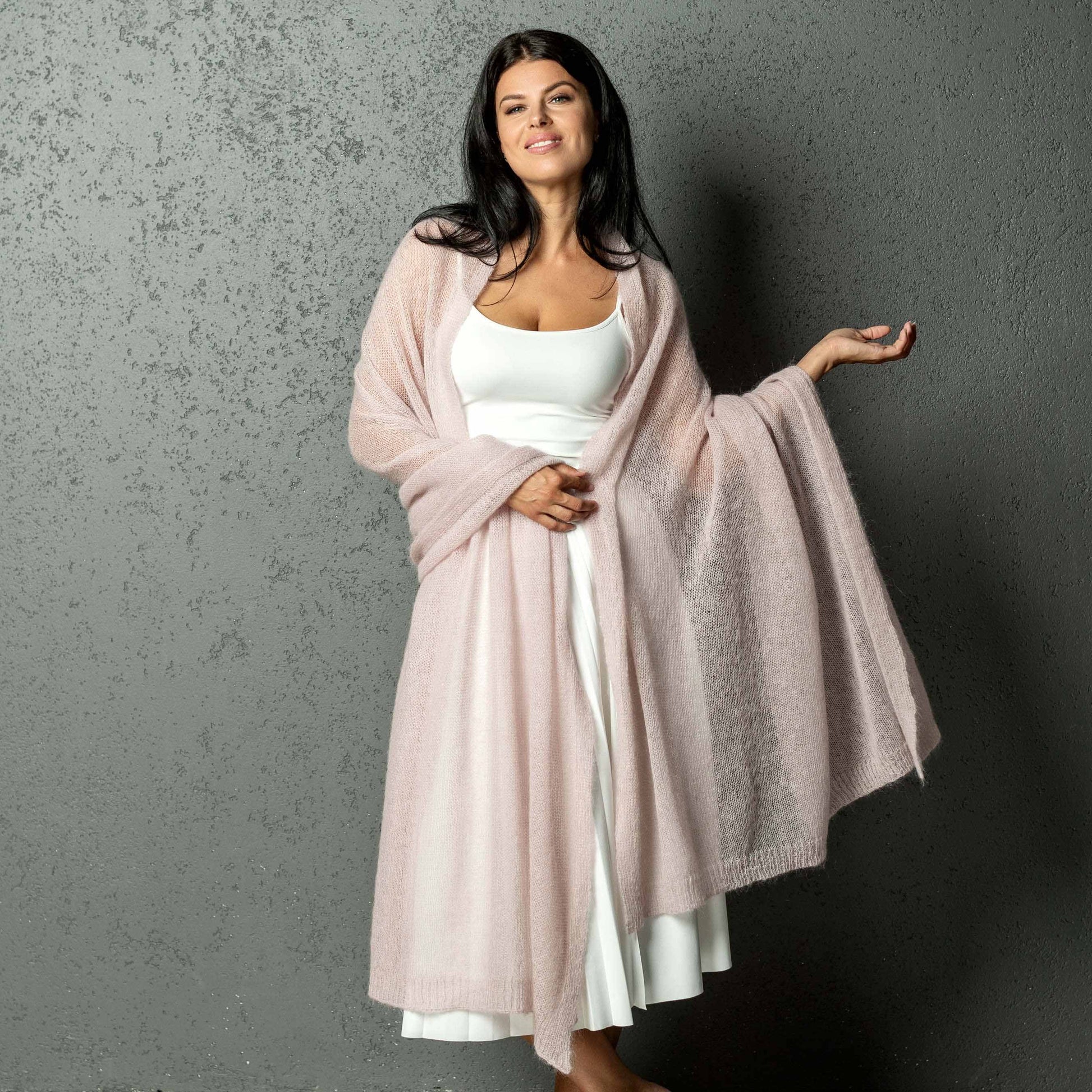 Luxurious, light like a wind Wrap - scarf dusty rose – very wide and very long kidmohair wool garment suitable for all year seasons.