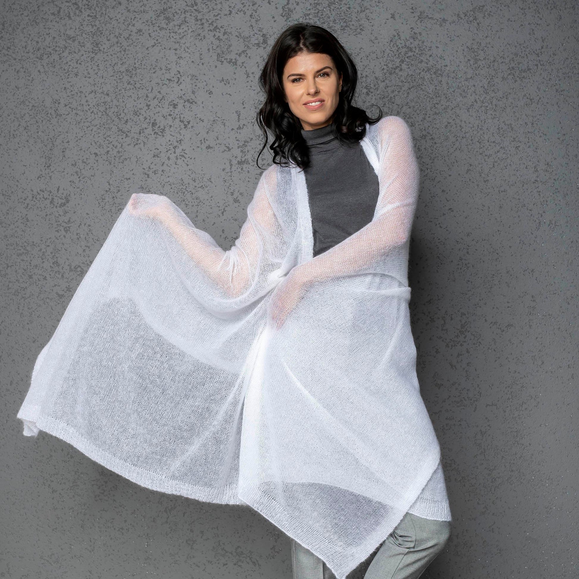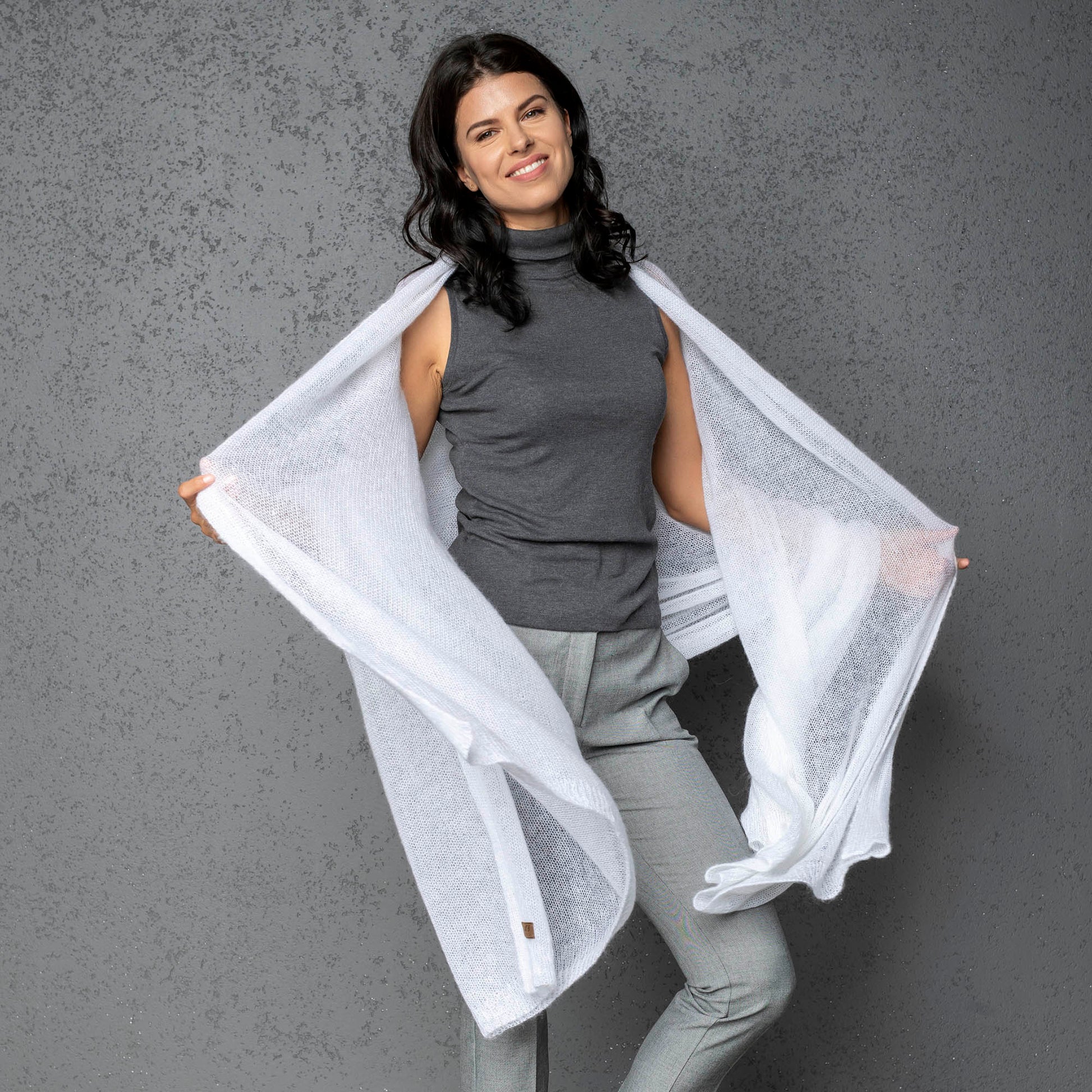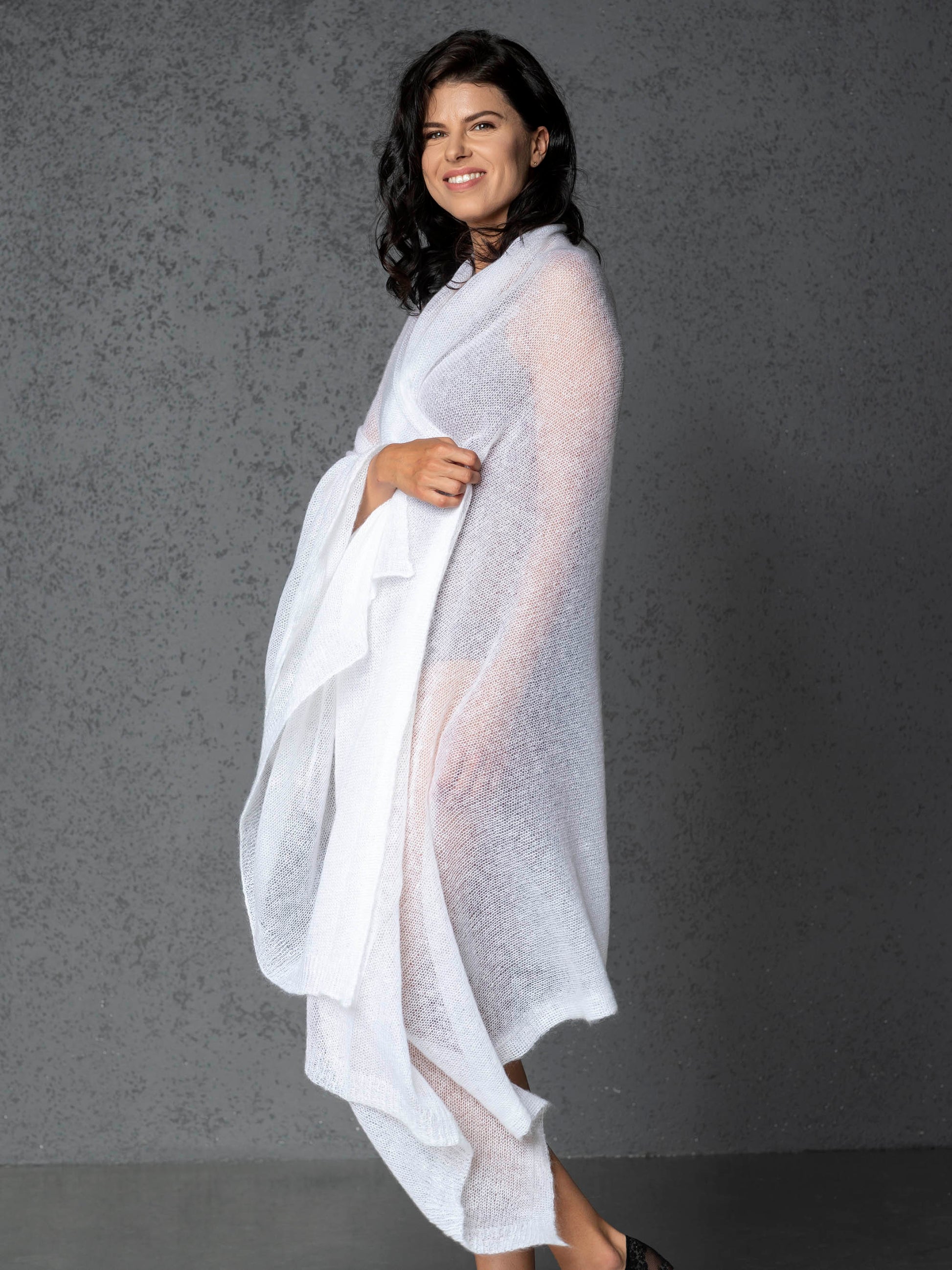 Luxurious, light like a wind Wrap - scarf WHITE – very wide and very long kidmohair wool garment suitable for all year seasons.