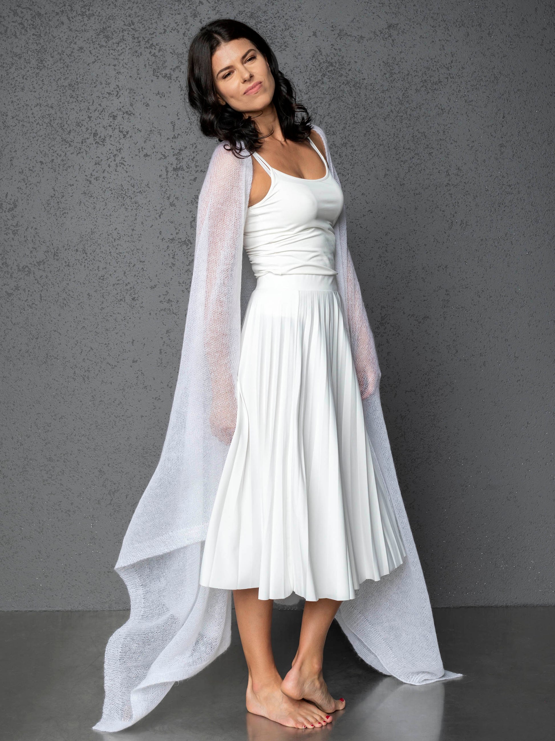 Knitted mohair wool wrap, white wool wrap, wide mohair wrap, summer shawl, knitted light shawl, knitted wool wrap, light wrap, mohair wrap