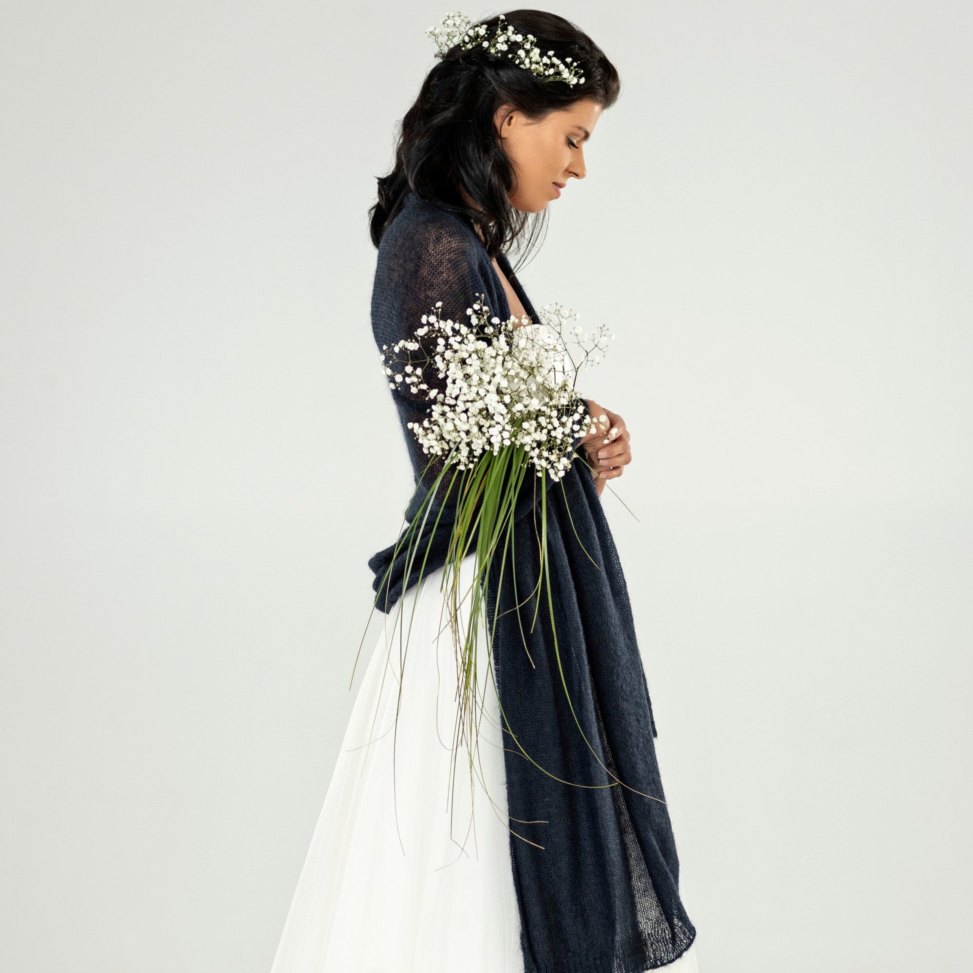 Wedding bridal cape wrap shrug shawl knit from kid mohair - dark blue